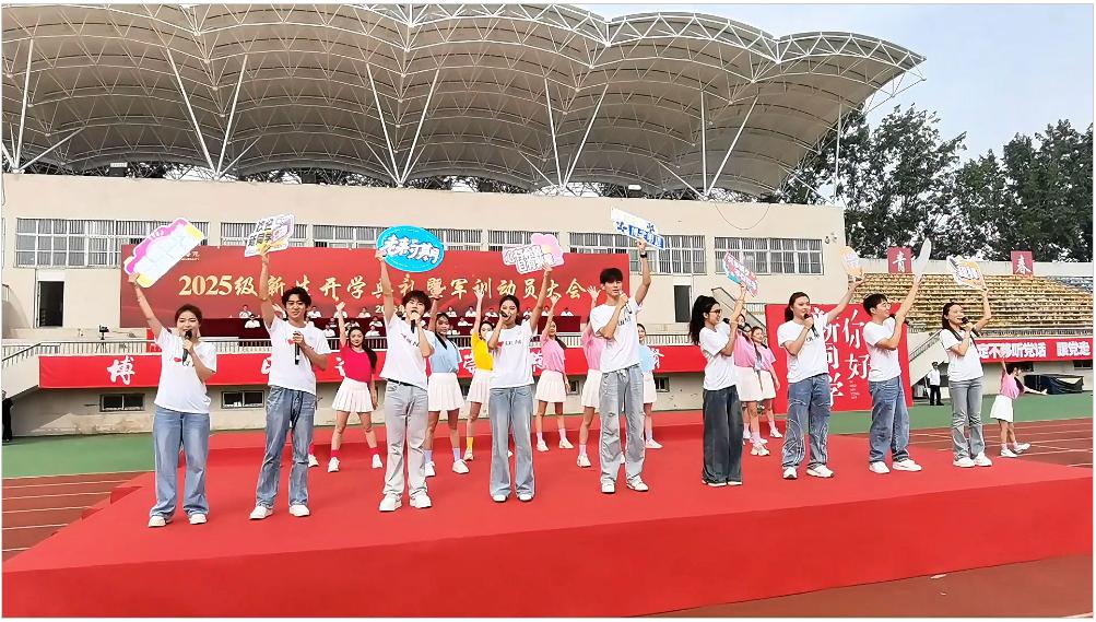 赵敏宣布2025级新生军训开训。开学典礼暨军训动员大会在全体师生齐唱《歌唱祖国》的豪迈歌声中落下帷幕。