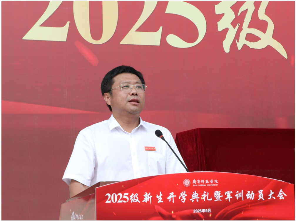 “我将在师院‘博学明道、崇德象贤’校训的指引下,带着对教育的热爱,带着对未来的期许,在师院的沃土上开拓眼界、增长才干,成长为有理想、有本领、有担当的师院人!”新生代表、教师教育学院2025级学生韦祎的发言,道出了全体新生的共同心声,展现了新一代师院人“担当教育新使命,奋进强国新征程”的坚定决心。