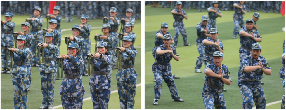 汇报科目展示环节,养成方队、刺杀操、擒敌拳、综合战术及战场救护等科目依次进行,参训学生动作规范、斗志昂扬,出色完成了各项汇报任务。