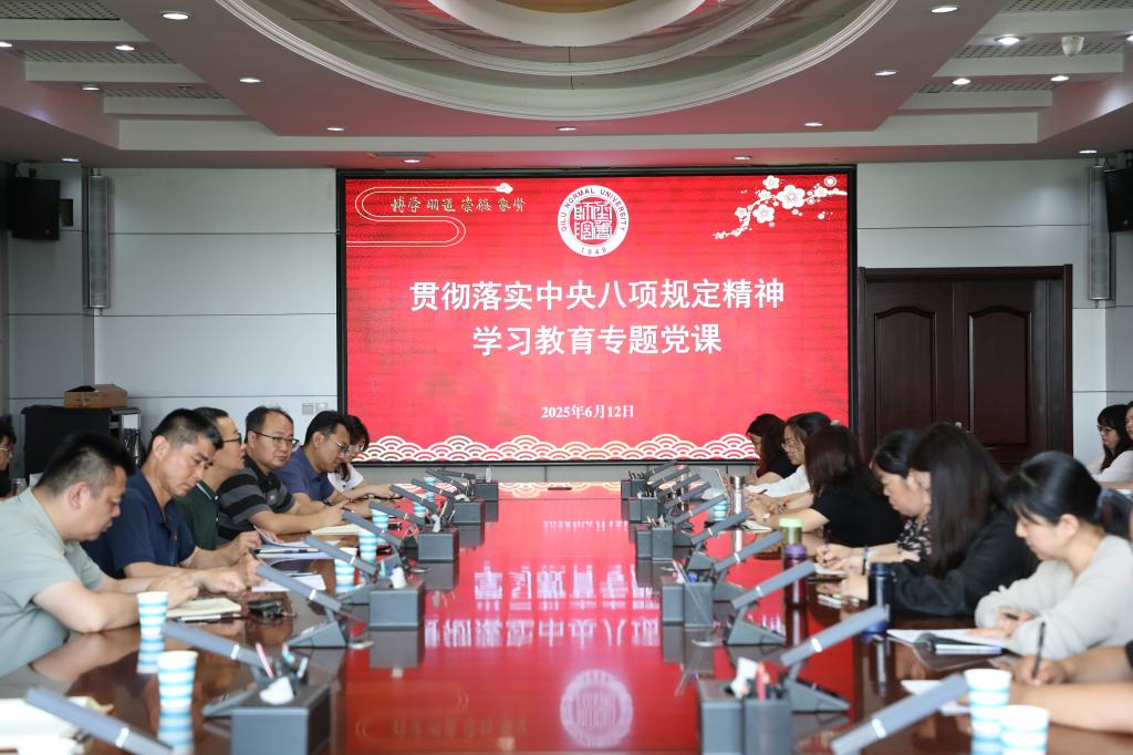 为扎实推进深入贯彻中央八项规定精神学习教育,2025年6月12日,学校党委委员、副校长孙洪兆为师生党员讲授题为《锲而不舍落实中央八项规定精神》的专题党课。