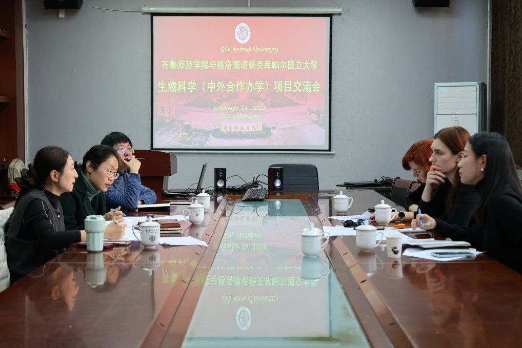 为深化国际教育交流合作、赋能人才培养高质量发展,2025 年 11 月 26 日下午及 28日上午,齐鲁师范学院生命科学学院与白俄罗斯格洛德诺杨克库帕尔国立大学聚焦生物科学中外合作办学项目、学科建设等核心议题,举办两场专题对接会,进一步凝聚合作共识、拓展合作维度。