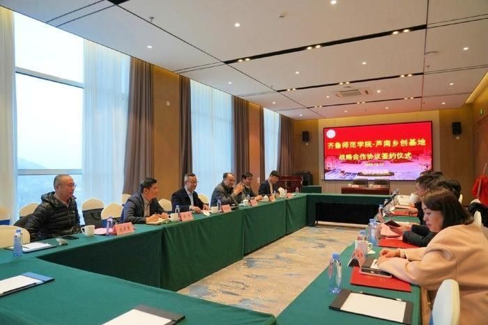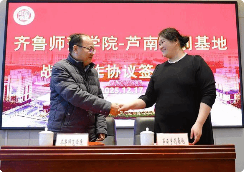 签约仪式上,孙洪兆与贾杰共同签订《齐鲁师范学院与济南芦南乡创基地合作框架协议》,生命科学学院院长崔大勇与贾杰共同签订《齐鲁师范学院生命科学学院与济南芦南乡创基地战略合作框架协议》,孙洪兆、杨东兴、贾杰、学校发展规划处处长李剑为“芦南乡村振兴与教育创新实证基地”“齐鲁师范学院未来教育创新实验园(芦南基地)”两大基地揭牌。