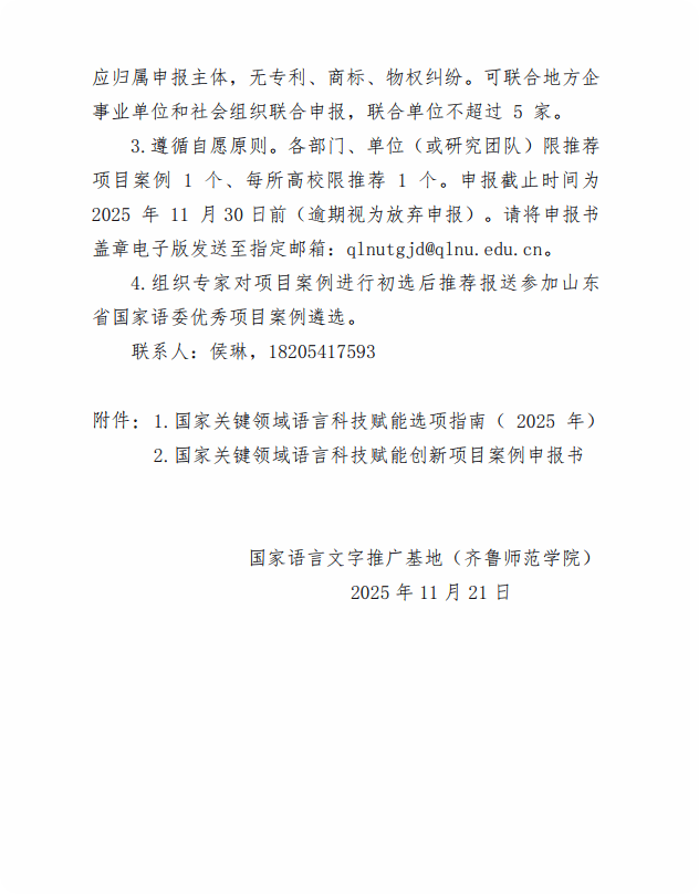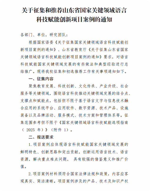 关于征集和推荐山东省国家关键领域语言科技赋能创新项目案例的通知