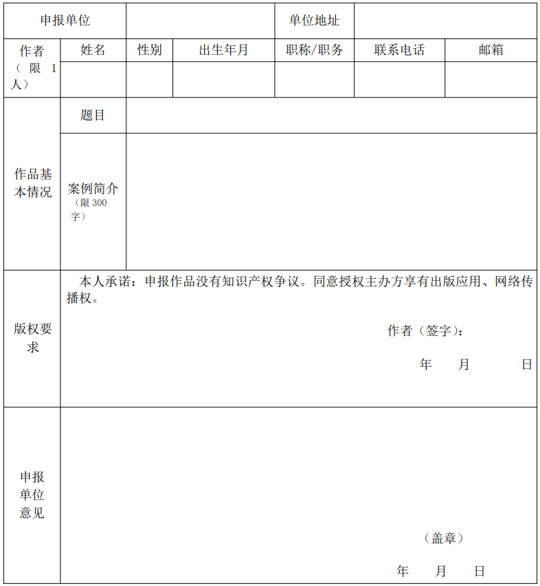 4.申报人员需填写《“公寓的故事”公寓工作案例评选申报表》(见附件二),并加盖学院公章。