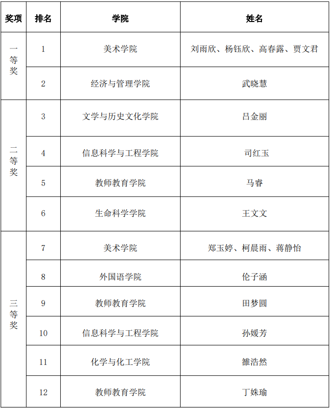 (一)获奖名单