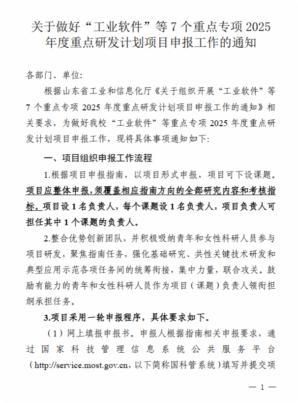 关于做好“工业软件”等7个重点专项2025年度重点研发计划项目申报工作的通知