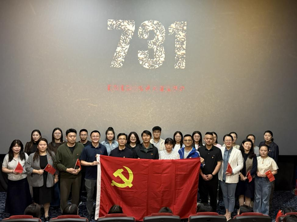 影片《731》以真实历史为依托,深刻揭露了侵华日军第731部队在二战期间犯下的反人类罪行,生动再现了无数无辜民众在苦难中的抗争与坚守,展现了中华民族在绝境中不屈不挠的精神气节,是一部兼具历史深度与思想温度的红色教育教材。观影现场氛围庄严肃穆,党员们被影片中残酷历史事实深深震撼,更深刻体会到革命先辈以鲜血和生命换来的和平时代来之不易。