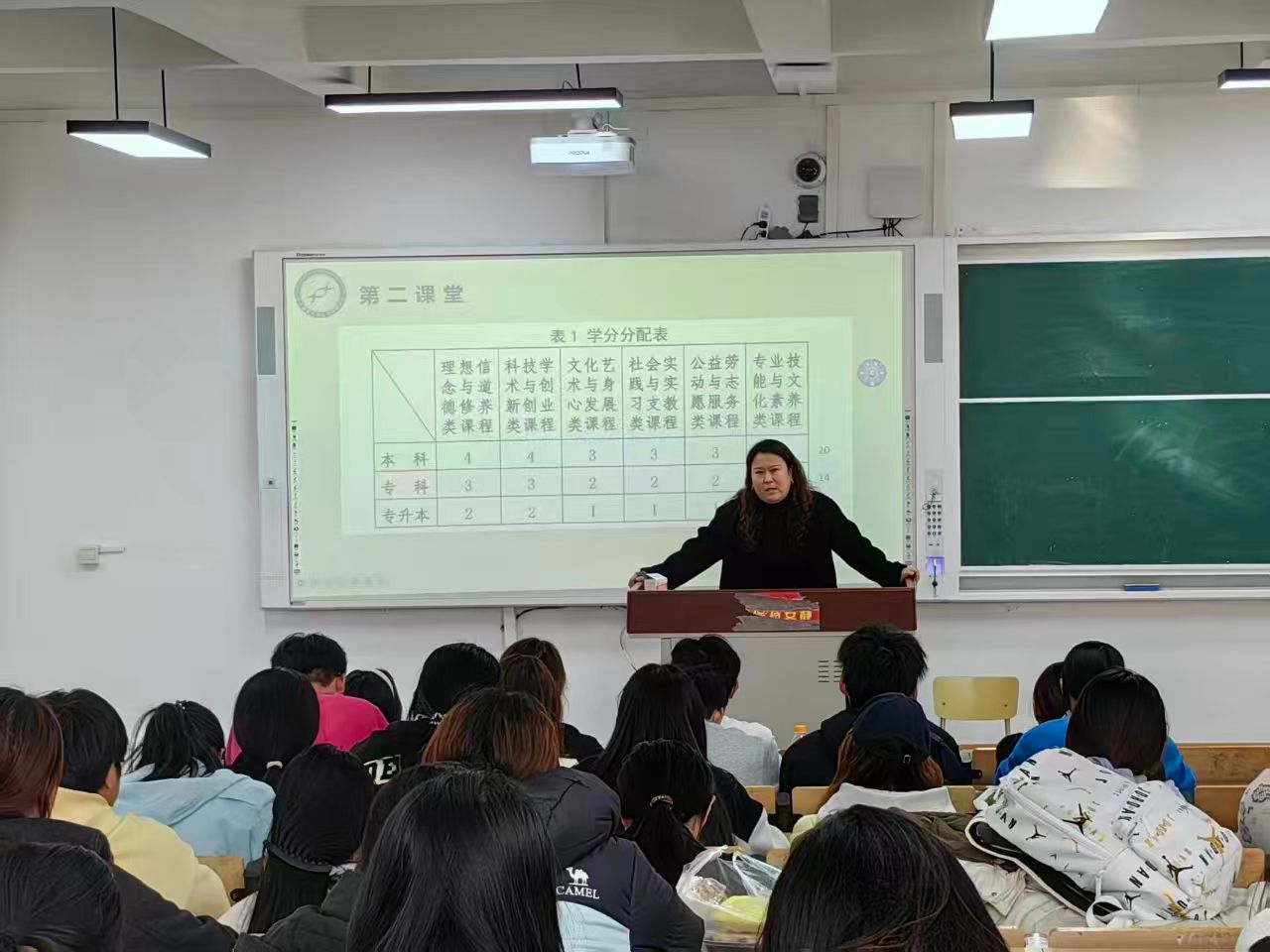 培训中,王冰悦从育人视角拆解资助体系,围绕国家奖助学金、助学贷款等核心项目,详解流程标准并结合案例厘清误区,助力学生干部精准传策,让有需要的学生感受政策温度,践行“资助育人”目标。他还阐释第二课堂“补充第一课堂、拓展育人维度”的价值,强调其在综合素质提升、创新精神培育与实践能力锤炼中的作用,结合学院特色推介志愿服务等载体,明确参与学分规则,鼓励学生干部搭建平台,让第二课堂成为立德树人重要阵地。