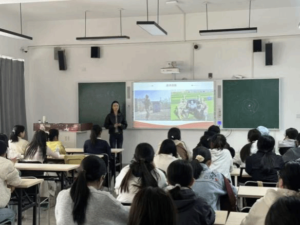讲座伊始,张蕊琦同学结合自身军旅生涯与复学后的学习生活,分享了从青涩学子到合格军人,再回归校园完成蜕变的成长历程。她深情讲述了军营里的难忘时光,从严苛的军事训练,到家国使命的深刻感悟,用朴实而真挚的语言,还原了军营生活的热血与坚守,让同学们真切感受到军营的魅力,树立起“携笔从戎、报效国家”的理想信念。