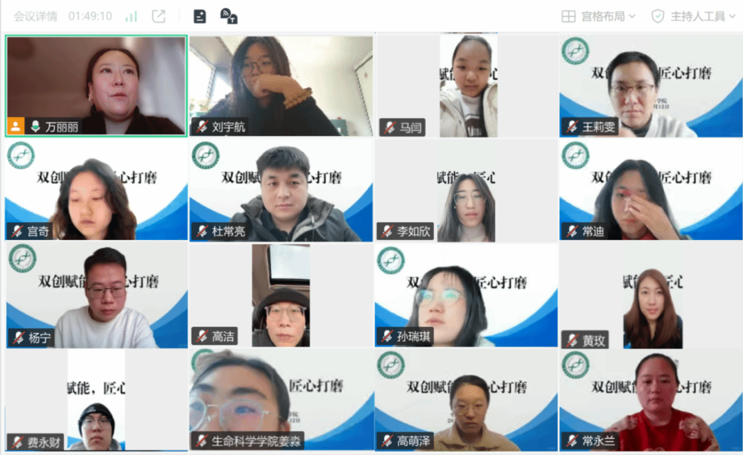 为进一步提升学院创新创业赛事备赛质量,强化重点项目培育与精准指导,2月12日,生命科学学院通过线上形式召开了双创赛事项目专题指导会。会议由学院党委副书记万丽丽主持并作部署指导,相关辅导员、各项目指导老师及项目主要负责学生参加会议。