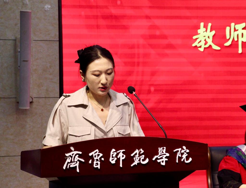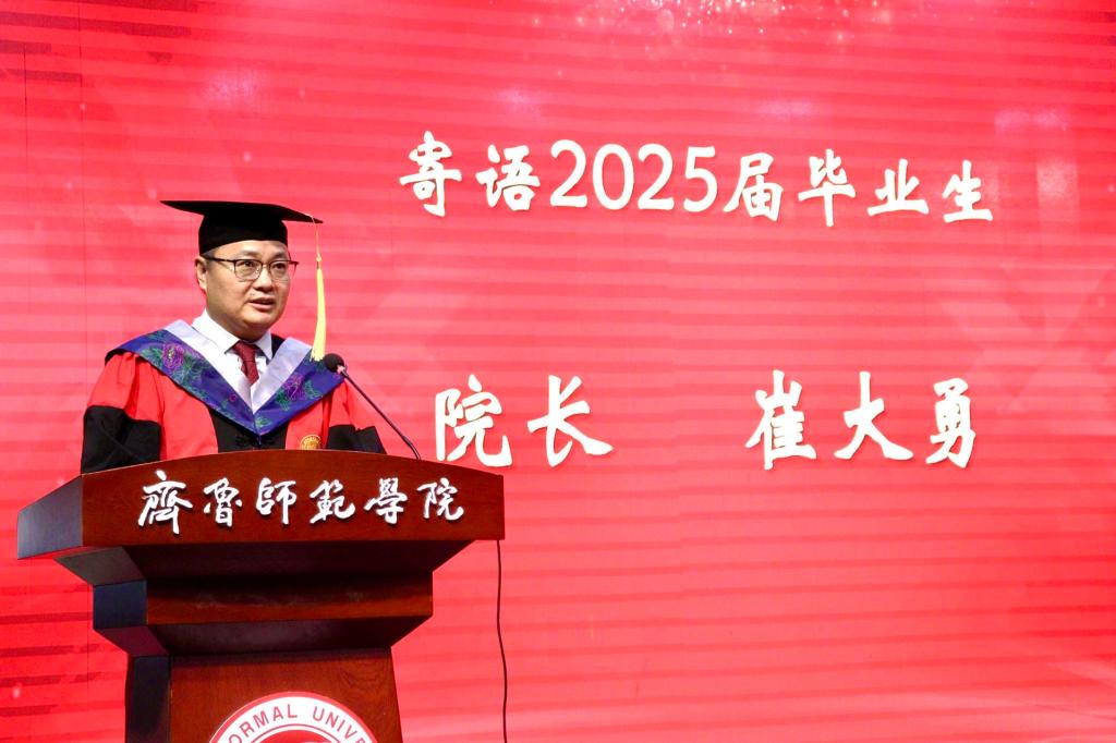 教师代表杨欢欢回顾了与2025届毕业生共同成长的四年时光,她肯定了学生们在学业竞赛、社团活动中的历练与情谊积淀,面对新征程,她提出三点期许:一是坚守勇气与担当,视挫折为成长契机;二是永葆终身学习热情,适应时代变革;三是铭记母校为精神家园,常怀初心。最后,她以“愿你如阳光明媚,如花朵绽放”为喻,祝福全体毕业生在新的人生篇章中乘风破浪,书写辉煌。