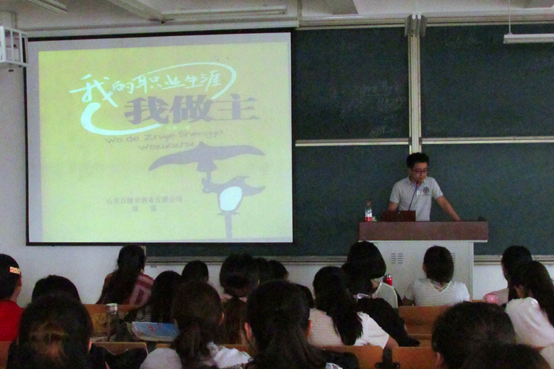 报告会讲述主题前,郑部长为同学们简要介绍了山东百脉泉酒业的发展历史与经济实力,并向大家介绍了酿酒的历史和品酒、鉴酒的方法;随后,郑部长分别从职业规划的定义、怎么做、其影响因素和原则四个方面一一介绍职业发展规划知识;并结合自己的亲身经历与工作经验向同学们介绍了简历制作和工作面试方面的技巧和注意事项。会上,王部长还和与同学们就职业生涯规划等方面的问题进行了互动交流,现场气氛活跃。