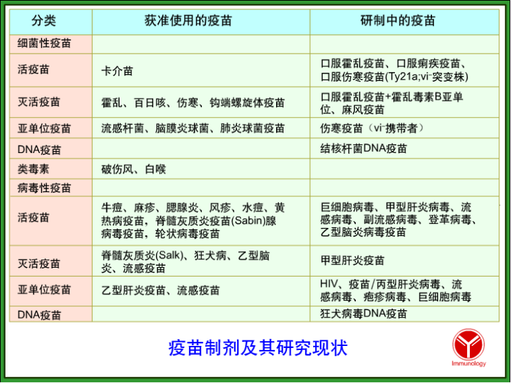 ①疫苗:用于传染病的抗原制剂称为疫苗。包括活疫苗和死疫苗。