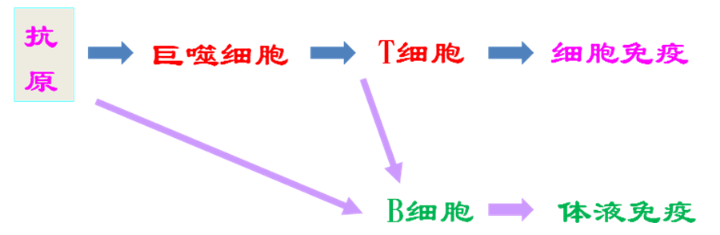 T细胞介导的细胞免疫:致敏淋巴细胞通过与相应的抗原接触直接杀伤病原靶细胞,或释放多种可溶性的生物活性物质(淋巴因子),发挥免疫效应。