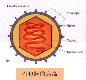 有些复杂的病毒在衣壳的外面包裹着一层由脂类和多糖组成的包膜,有的包膜上还长有刺突(如禽流感病毒、新型冠状病毒)。