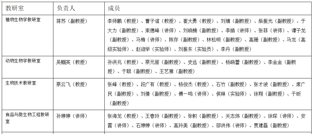 生命科学学院教研室设置